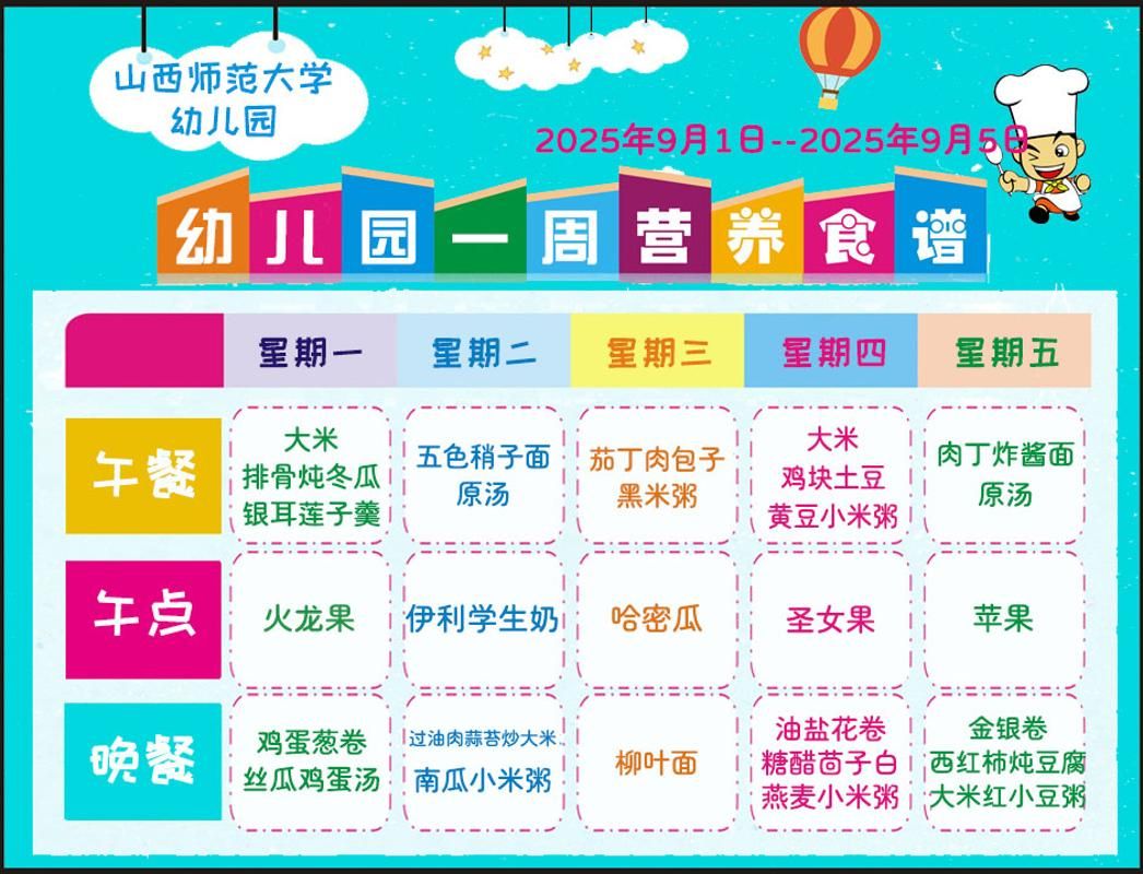 师大幼儿园2025年下学期第一周食谱