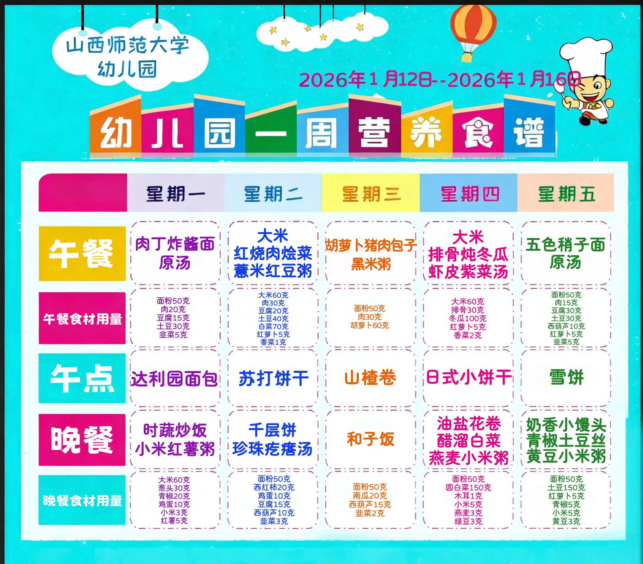 师大幼儿园2025年下学期第二十周食谱
