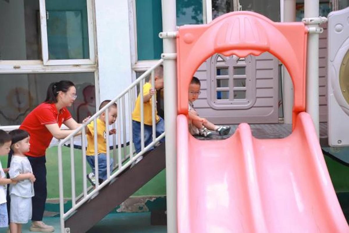小班的小队伍像一串跟着走的小蘑菇,你挨着我,我跟着你,走向宝贝们的“城堡乐园”。滑梯像彩虹做的小山坡,“嗖”地滑下来,风里都是咯咯的笑声;裹了一层阳光的焦糖色摇摇马,带着宝贝们,演奏着最欢快的旋律。在户外撒欢的时光,是小脚丫踩出来的甜蜜,每一阵细碎的笑语和小心翼翼的尝试,都在阳光下酿成新学期最甜的开场。