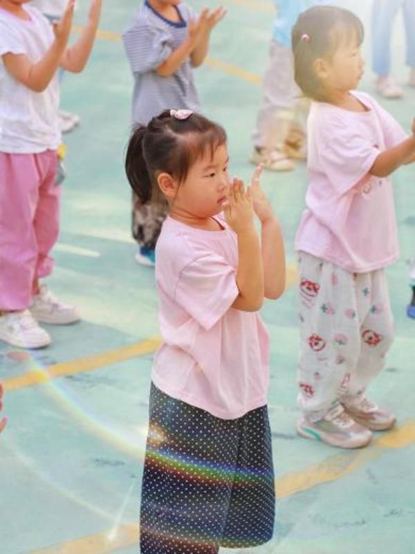 熟悉的课间操音乐响起,上学期还怯生生跟着模仿动作的“小不点”,如今已能在音乐里舒展得像株迎着光的小苗,连晃脑袋的弧度里,都藏着“我长大了”的笃定,中大班的宝贝们,用蹦蹦跳跳的模样,把“成长”跳成了一首轻快的歌。