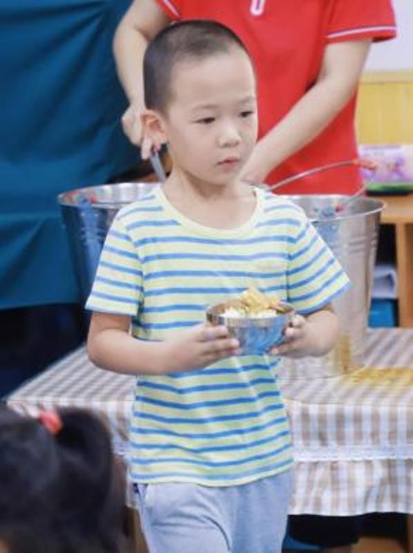 中大班的宝贝们,早已褪去初入园的依赖,盥洗时,没人再挤着抢水龙头;午睡时主动叠好外套;进餐时,熟练端碗持勺,米粒不沾衣襟。上学期还需要帮忙的小身影,如今正用“我自己来”,把“长大”藏进每一个小举动里。