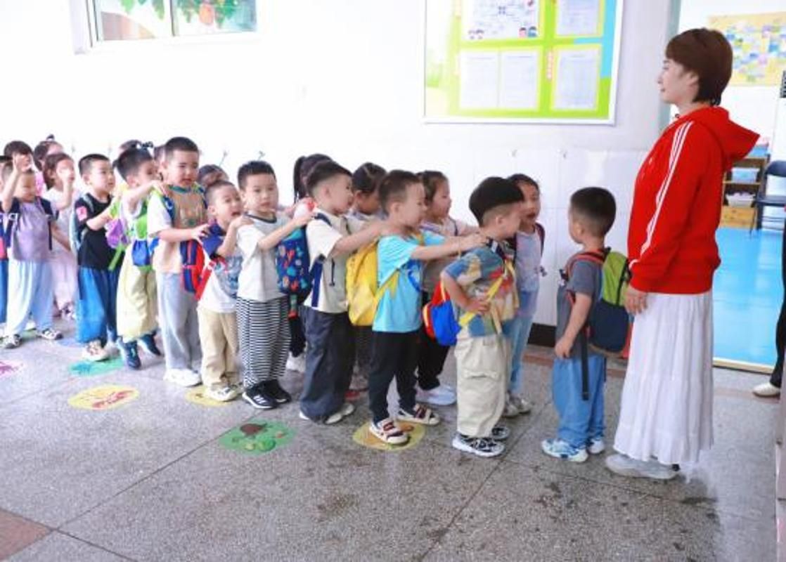 夕阳把幼儿园染成暖橘色时,小身影们排着队往外走,书包上的小挂件晃呀晃,像把白天的热闹都收进了书包里,明天的风会照样吹过滑梯,这些揣着小秘密的宝贝们,会带着新的期待,再一次推开幼儿园的门。