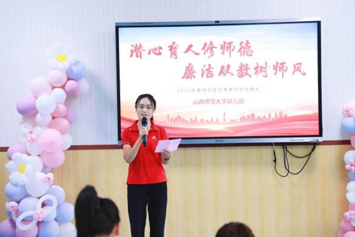 秋水蒹葭,师者无华,在这个如诗如画的季节,伴随着新学期的开始,我们迎来了第41个教师节。9月9日,山西师范大学幼儿园举办了“潜心育人修师德 廉洁从教树师风”教师节庆祝活动。全体教职工齐聚一堂,共庆节日,共话使命。