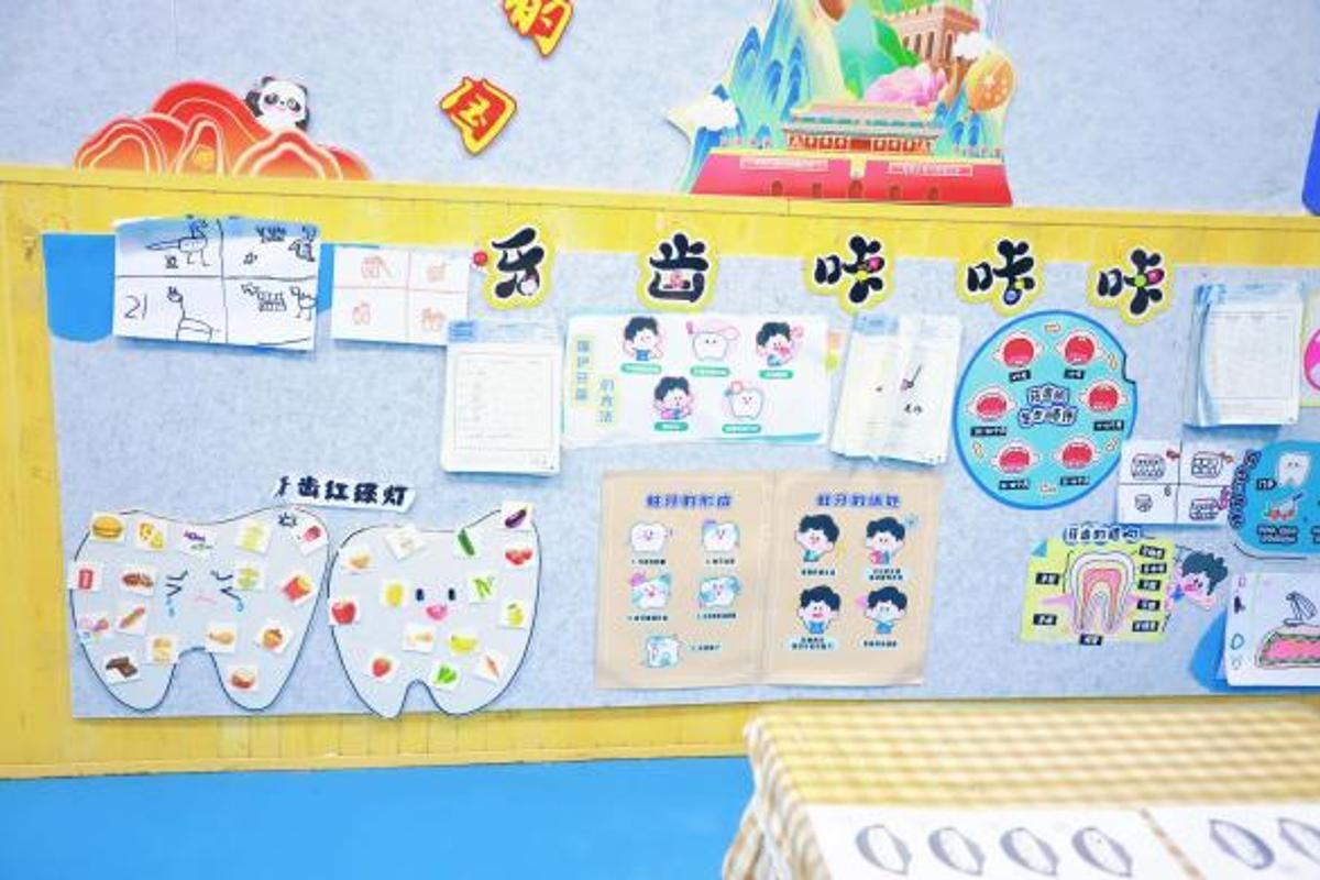 小班的主题墙,是为初入幼儿园的宝贝们打造的“安全感港湾”,中班的老师们,则把探索成长的斑斓天地铺在了墙上,大班的小朋友们,在驻足凝望时,悄悄把牙齿健康小技巧记在了心里。